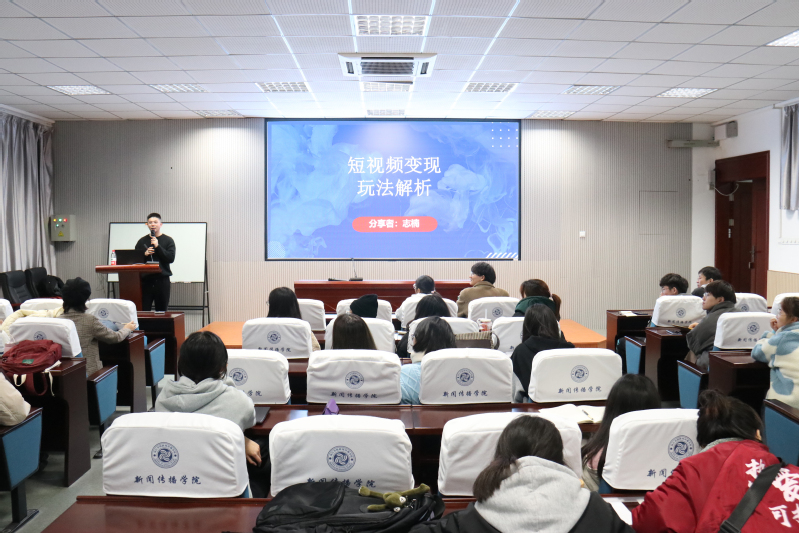 12月19日晚,英国上市公司365宏志班在工科楼B座学苑讲坛开展了《短视频+直播赋能流量变现》讲座,易知学院院长刘志楠受邀为宏志班学员授课。