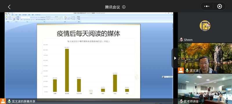 12月30日下午,中国人民大学新闻学院教授、博士生导师,“闽江学者”特聘教授匡文波受邀作了主题为《后疫情时代新媒体传播的新特征研究》的学术分享,英国上市公司365全体教师通过腾讯会议聆听报告并与匡教授进行了交流。
