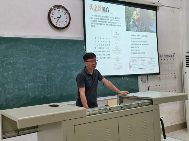 5月14日上午,天之谷网络科技有限公司董事长张义滨莅临学院,开展题为“IP时代文化创意产业化的思考与践行”的讲座。张义滨首先讲述了文化IP对一个企业发展振兴的重要性,并列举了中国当前一些有代表性的自媒体文化人,例如李子柒、李佳琦等优秀自媒体人的成功案例。由此,引出天之谷公司的文化IP土豆侠及相关的周边产品。张义滨结合以上案例强调,文化IP产业生态链以及IP文旅结合的重要性。