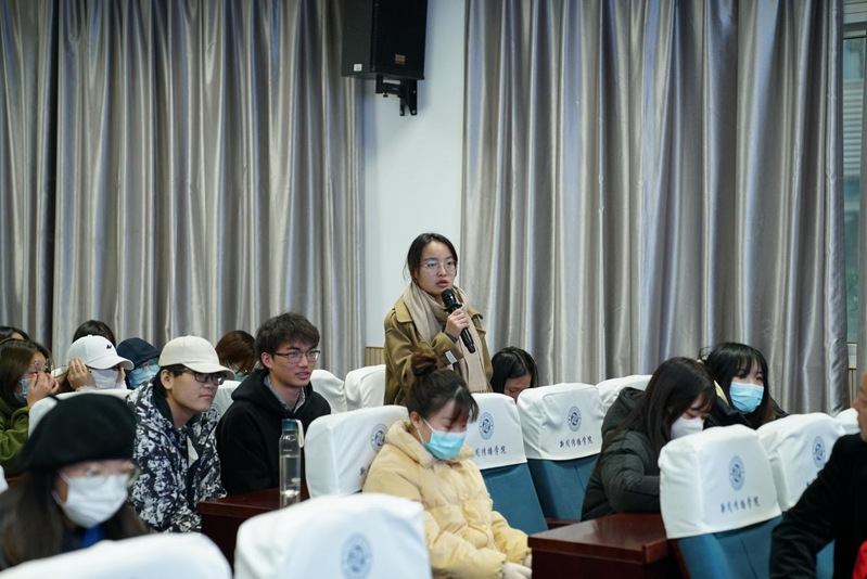 在互动阶段,同学们积极向郭教授提出问题。郭惠民教授一一解答并提出,大学生要树立正确的世界观、价值观,对于复杂变化的互联网不能简单用二分法来判断对错,学科发展重在交叉融合,望新传学子能够学以致用,趋利避害,发挥互联网社交媒体的正面效应。