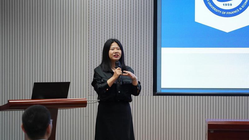 常春梅副教授以安徽财经大学广告学为例,结合地方应用型高校国家一流专业建设的探索与实践作主题发言。常春梅就安徽财经大学广告学专业发展经验,聚焦其发展现状分享国家一流专业建设心得。对于广告学科未来建设规划,她指出专业建设应坚持教学改革,加强课程与教材特色建设,加强师资队伍建设。最后,她希望高校间在未来能够多多交流学习,相互指导工作,共同进步。