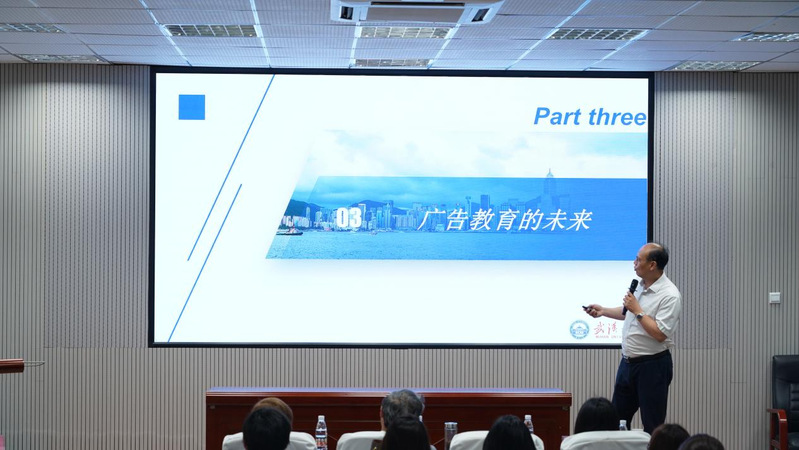 程明教授就“关于国家一流广告学专业建设思考”作主题发言,分享其对于广告专业建设的认识与思考。他指出,一流专业建设应注重引进人才、培养学生。在新文科建设中,广告学作为应用型专业,需从理论知识结构、专业实践技能、特色前沿三个层面出发,重视知行合一、学以致用,在建设发展过程中形成特色、凝练特色,追求与众不同,构建专业的特色彰显、特色专业方向两个一流专业建设维度。