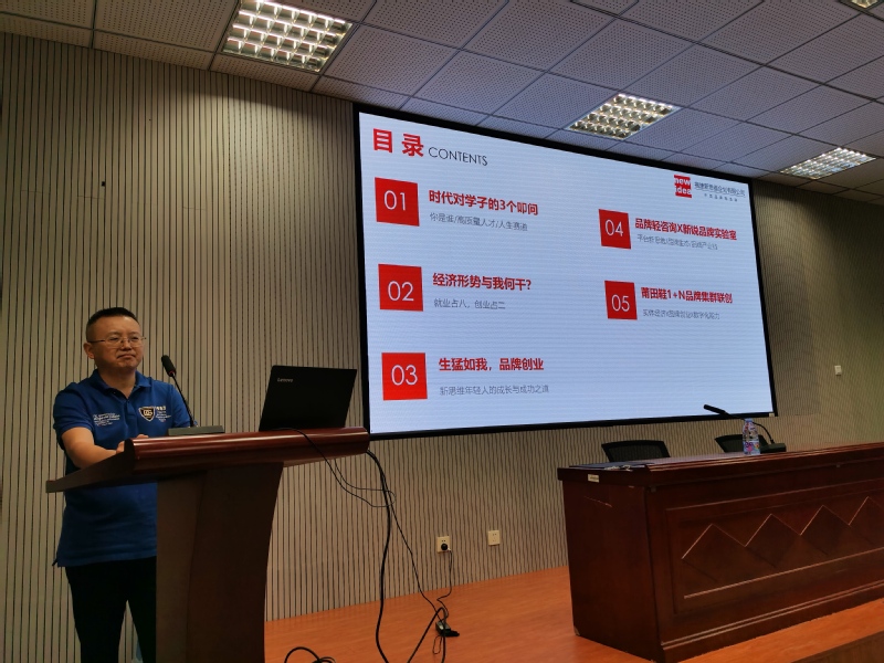 苏国锋从新时代对学子三个叩问、经济形势与我何干、生猛如我、品牌创业、品牌轻咨询X新锐品牌实验室、莆田鞋1+N品牌集群联创等五个方面,与学子们分享了在品牌端如何看到新机遇、新可能,如何拓展新思维、开阔新视野,如何在数字时代有所新追求、新作为。