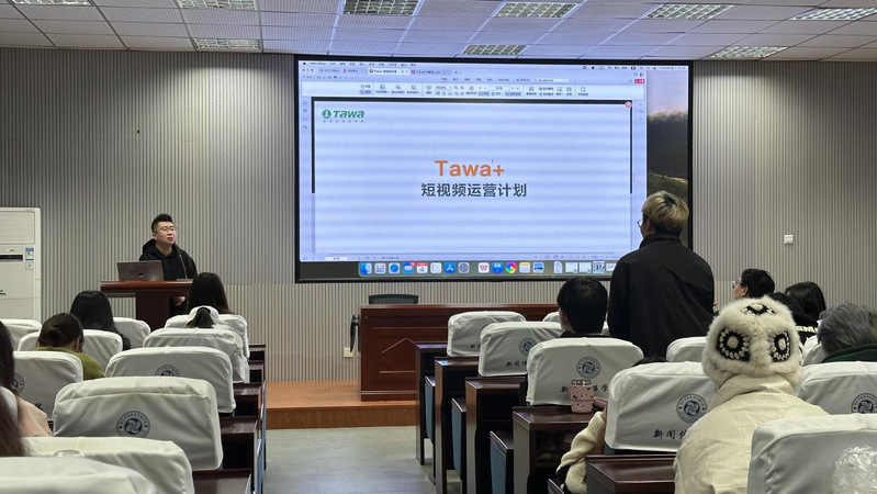 随后,品牌创始人杨程向同学们介绍了tawa的品牌理念、使命和价值观,以及公司未来的发展方向。他以学长的口吻与同学们分享了自己的经历和心得,鼓励同学们要敢于试错勇于表现自我。他的真诚和热情感染了在场的每一位同学,赢得了大家的热烈掌声。