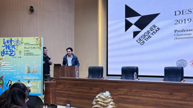 在短暂的茶歇之后,世界级竹编艺术专家、2019年泰国设计希拉帕翁奖获得者、Korakot.Int. Ltd.创始人Karakot Arromdee博士发表了主题为“从渔村到世界舞台的竹艺之旅”的演讲。Karakot博士分享了他如何通过竹编艺术将泰国渔村的传统手工艺推向世界舞台的经历。他详细介绍了竹编艺术的工艺特点和创新之处,展示了如何通过现代设计理念和国际市场推广,使传统手工艺品获得全球认可,进而带动渔村经济发展。