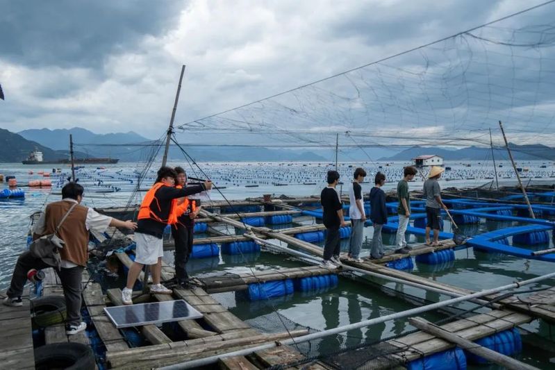 微电影的导演、制片、编剧、摄影、灯光、录音等主要成员均由我院学生组成,不同的专业背景和成长经历在历时四天的实地拍摄中迸发出丰富的灵感和热情。实践队员精心撰写剧本,架设器材,怀揣着对影视创作的热爱,对制作水平表现出极致追求,多次深入一线实地选景,招募渔民担当群众演员,最终选定海上渔排、滩涂、码头和集市等作为主要拍摄场景,通过镜头刻画海上人家,展现传统渔业与现代养殖技术交融碰撞,针对一个镜头反复录制十余次成为拍摄常态,只为获得最具有表现力的画面。在面对环境噪声、群众演员表现力不足、场地条件受限等突发状况时,实践队员们根据分工逐一破解,耐心对群众做好解释工作,最终顺利完成实地拍摄任务。