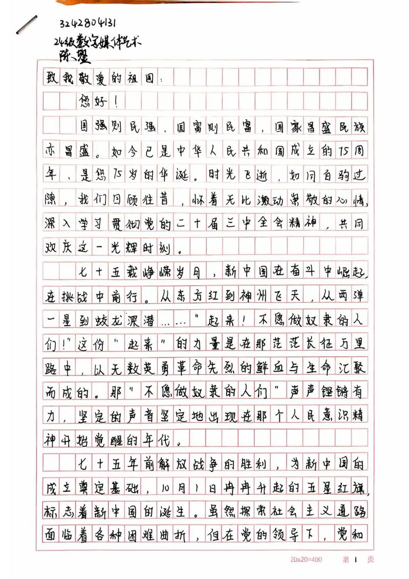 国强则民强,国富则民富,国家昌盛民族亦昌盛。如今已是中华人民共和国成立75周年,是您75岁的华诞。时光飞逝,如同白驹过隙,我们回顾往昔,怀着无比激动崇敬的心情,深入学习贯彻党的二十届三中全会精神,共同欢庆这一光辉时刻。