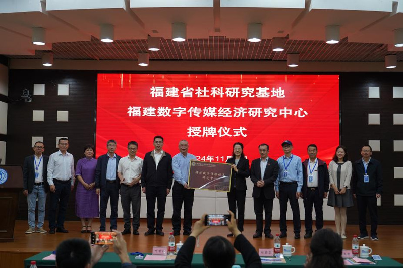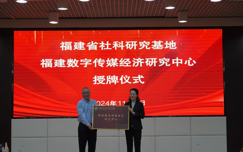 为深入贯彻落实习近平总书记关于哲学社会科学工作的重要论述和指示要求,闽江学院整合研究力量,以服务“数字福建”、促进福建传媒经济发展、助力福建数字文化产业壮大为目标,申请成立“福建数字传媒经济研究中心”,在省社科联的倾力支持下,中心正式获批立项建设。2024年11月9日,福建数字传媒经济研究中心授牌仪式在闽江学院行政楼举行。