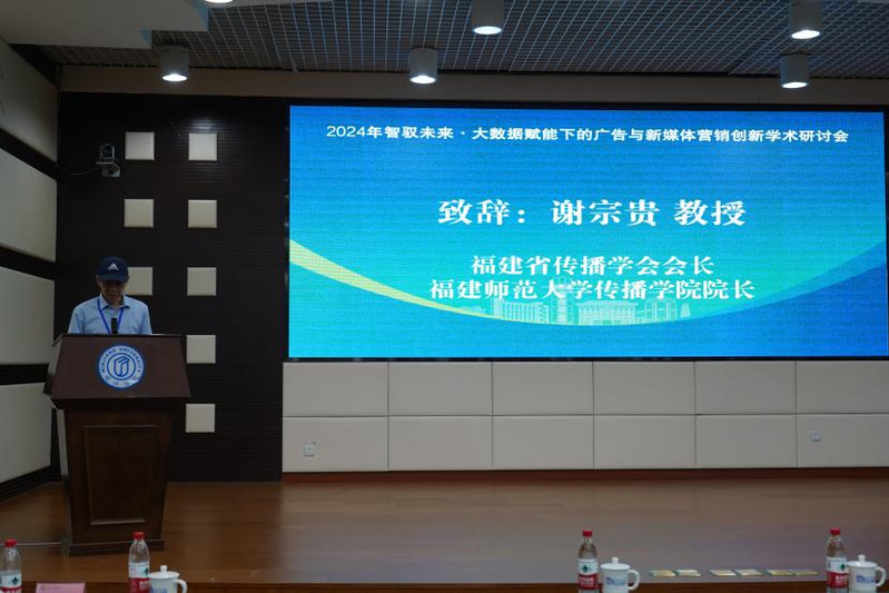 福建省传播学会会长谢宗贵在致辞中指出,本次会议为大家提供了一个高端、开放和包容的交流平台,旨在汇聚各方的智慧,聚焦大数据赋能下的广告与新媒体营销创新,共同探寻数字传媒经济的未来发展路径。希望各位专家学者能够围绕会议主题,积极展开讨论与交流,分享各自研究成果,共同为数字传媒经济发展贡献智慧。