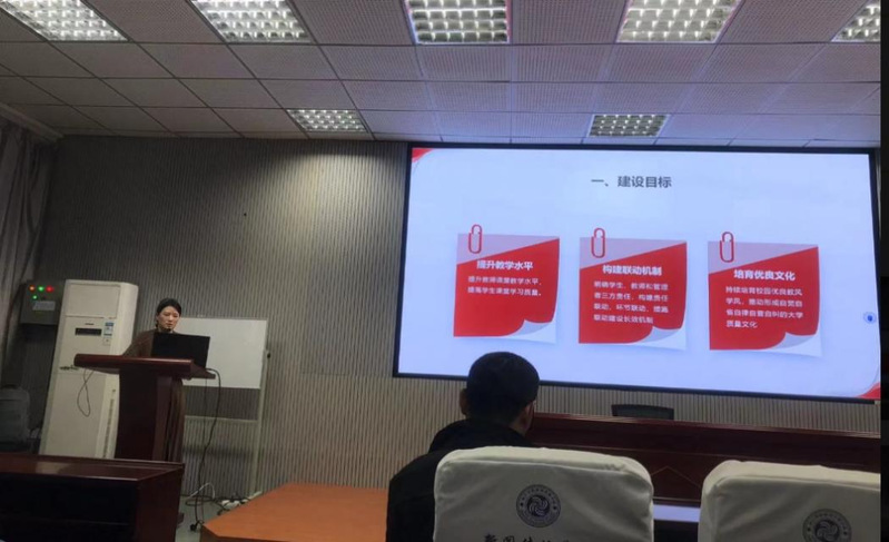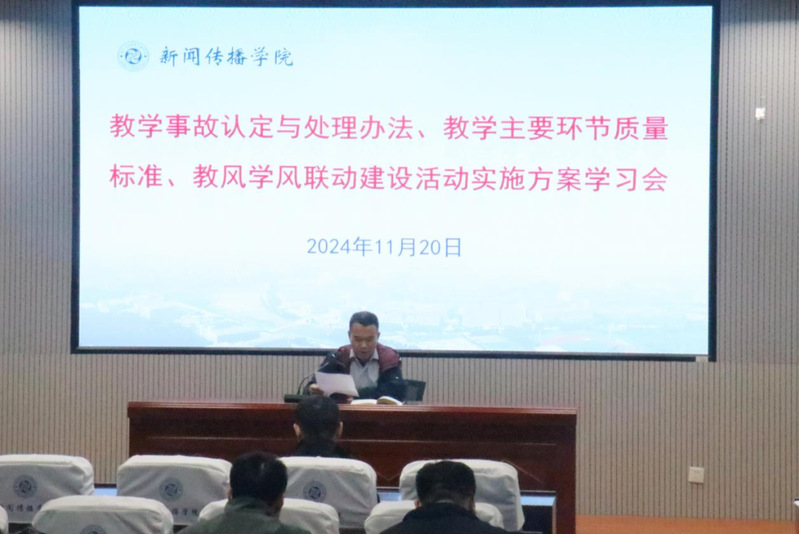 李晓霞、王衍、江月英等教师代表先后上台领学三个教学规范性文件。《教学事故认定与处理方法》是我校关于教学事故认定与处理办法的规范性文件,通过明确教学事故分类及等级、教学认定及处理程序等,有利于维护教学秩序、强化教风学风建设、 提高教育教学质量,保障师生权益。《教学主要环节质量标准》是我校关于教学主要环节质量标准指标,包括人才培养方案等16个教学主要环节的质量标准,指标设定以突出学生中心、突出产出导向、突出持续改进、突出应用特色为特征,充分体现了本科教学活动的科学性、严谨性和闭环性。《教风学风联动建设活动实施方案》中明确,我校将于2024-2025学年开展“教风学风联动建设活动”,该活动目标是为深入贯彻相关论述和精神,落实习近平总书记回校考察重要讲话精神,秉承优良传统,以狠抓教风学风联动为主线,提升教师教学水平和学生学习质量。该活动将促进明确三方责任,构建长效机制,培育优良教风学风,形成大学质量文化,助力教育教学高质量发展。