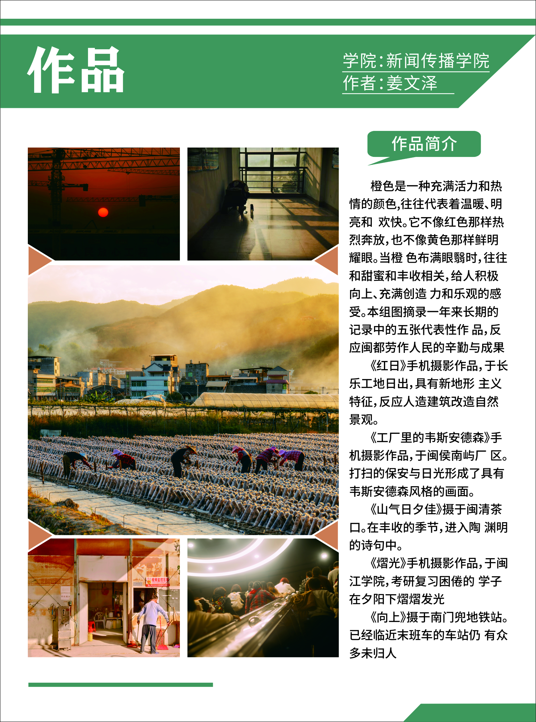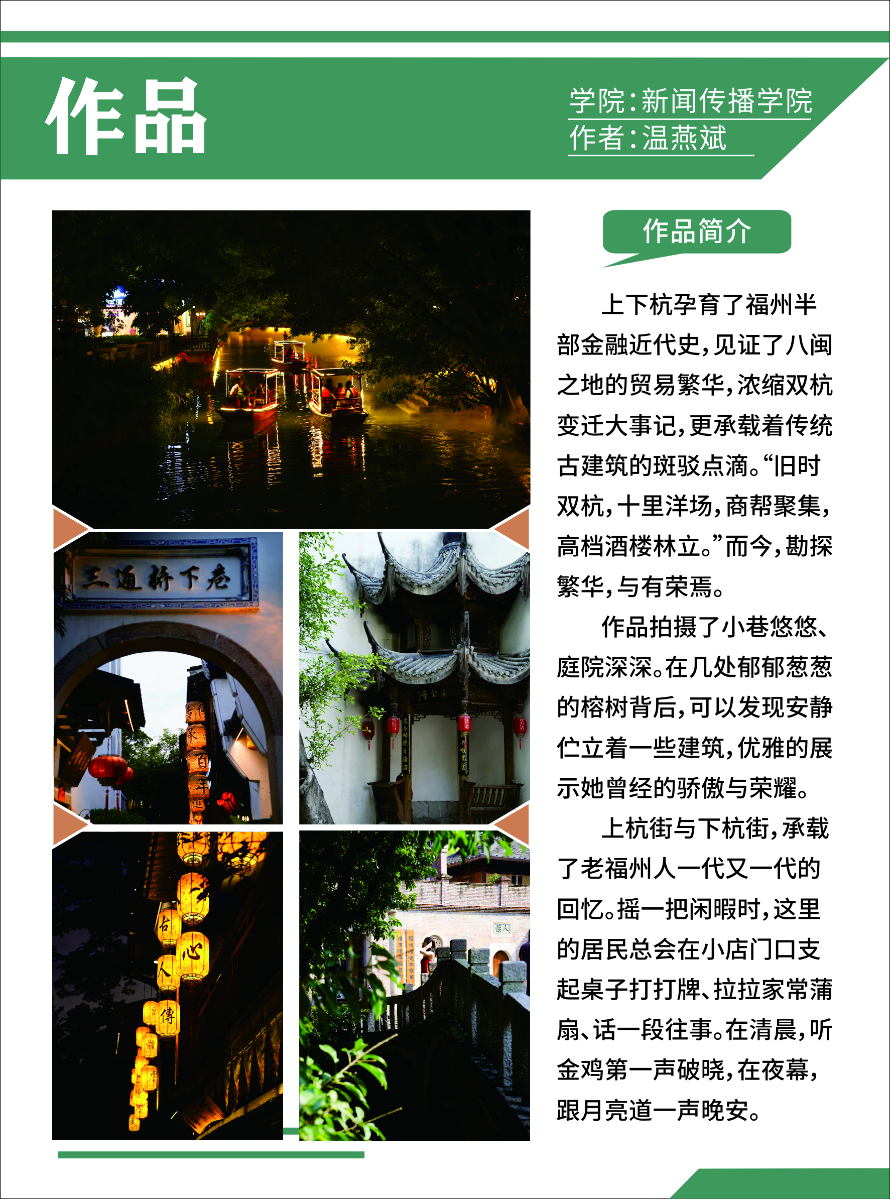 为深入学习贯彻习近平新时代中国特色社会主义思想和党的二十大精神,为党育人,为国育才,在全面落实立德树人根本任务中坚守初心使命,传承闽都优秀文化。闽江学院宣传部、英国上市公司3659月10日—11月3日于工科楼B座长廊联合举办闽江学院“夏之影”校园原创微拍作品线下展示活动。本次展览共展出优秀作品60余件,包含校园风光、闽都风土人情、闽都文化建筑等。