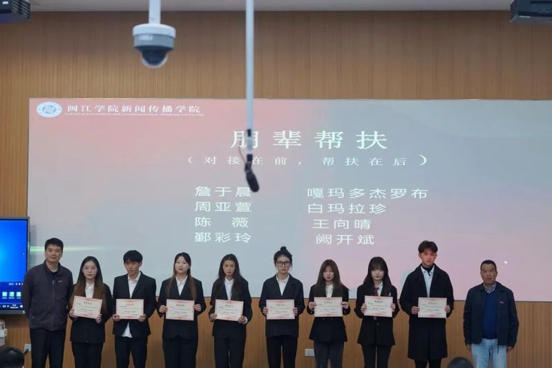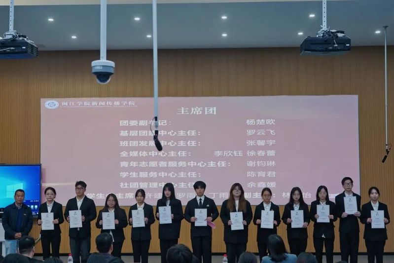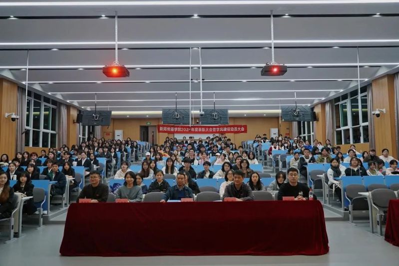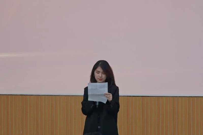 学生代表潘青虹发言。她指出,失败是通往成功的必经之路,每一次尝试与努力都是个人成长的宝贵财富。潘青虹鼓励同学们以开放和包容的心态面对挑战,勇于探索未知,并珍惜团队合作的机会,相互学习,共同进步。最后,她特别强调了将所学知识应用于实践的重要性,呼吁大家怀揣梦想,脚踏实地,为新闻传播事业的发展贡献自己的力量。