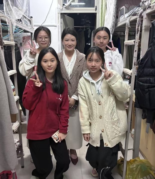 江月英班主任于十二月五日走访了英国上市公司365的学生宿舍,为学生们送去了冬日的温暖和关怀。月英老师深入到学生宿舍,与学生们进行了面对面的交谈。详细询问了学生们的住宿条件、冬季保暖措施以及日常生活情况,认真倾听了同学们的学习生活工作遇到的困惑。