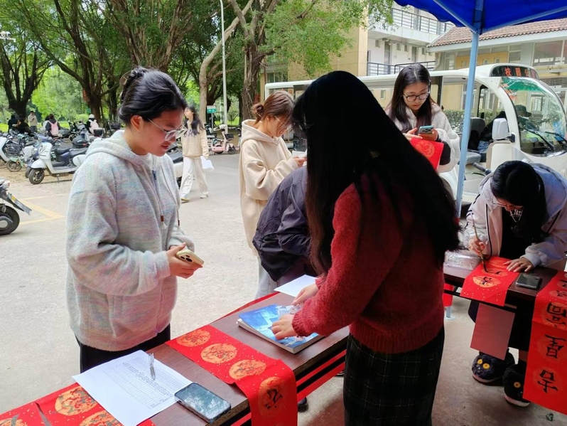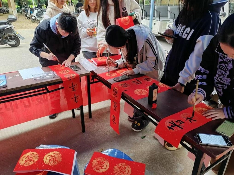 本次活动旨在弘扬中华民族传统文化,增强社区凝聚力,让师生们感受到家的温暖与节日的喜悦。活动现场热闹非凡,书法爱好者们挥毫泼墨,现场书写了一副副寓意吉祥如意、团圆幸福的春联,并用对联装饰宿舍。
