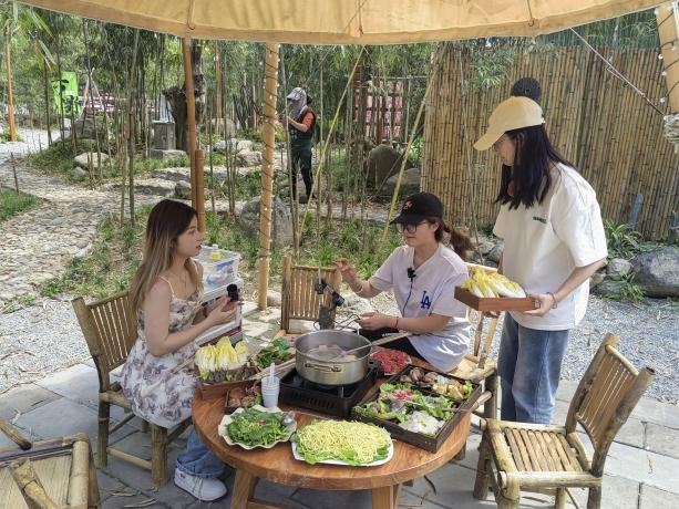 当清晨的第一缕光穿过“橙里民宿”的玻璃窗,这一场文旅漫游便有了温柔的起点。青石板路在镜头里泛着微光,斑驳的夯土墙下,是古民居的轻声低语。在生态农庄里,同学们与来自越南、巴基斯坦的游客共同领略田园之美。在五星农场的百香果架下,城市孩子第一次触摸到稻穗的锋芒,四十年前的劳动号子与现代互联网隔空共鸣。小主播用闽江水冲泡当地特色茶叶,茶香四溢之中自有一种“偷得浮生半日闲”的惬意。在午后的江边营地,风把野花插在每位游客的发间,金色的阳光洒在连绵的草甸上。围炉煮茶、云端烧烤、乡间火锅,炭火与江风合奏出的美食交响曲让屏幕外的观众纷纷留言:“这不就是向往的生活?”