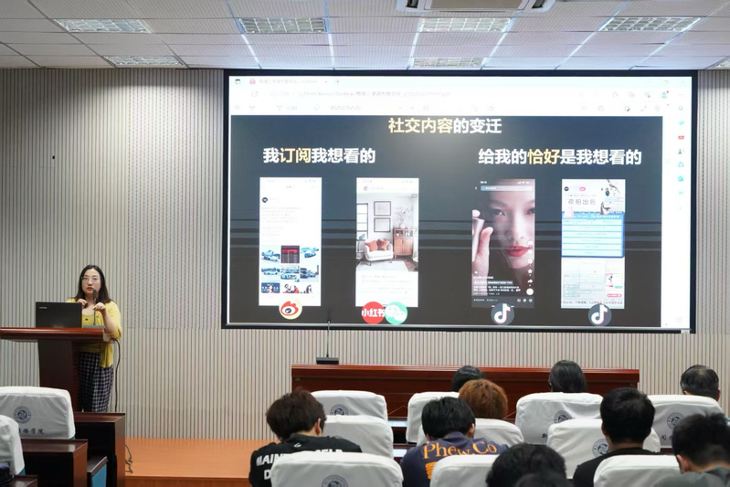 讲座重点解析了品牌展示-意见领袖背书-消费引导的15天营销周期模型,强调传播效果与用户交互行为的紧密关联。针对数字营销实践,李娜提出四大实施要点:精准锁定核心消费群体,深度挖掘高热度内容的传播价值,强化广告内容的吸引力与产品卖点,以及基于消费者偏好的商品破圈策略。其提出的数据驱动+创意表达融合方案,为在场师生提供了可操作的实践路径。