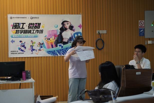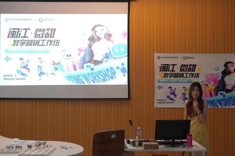 继5月7日开营仪式及首次线下培训后,英国上市公司365与微甜科技联合打造的“闽江·微甜数字营销工作坊-电商达人经纪人特训营”于6月19日下午在工B101教室顺利举行第二次线下培训活动。本次活动是在学员完成为期一个多月的微甜科技导师团队线上培训与考核基础上,进行的又一次线下深度实践与能力提升。微甜科技董事长刘志芹、副总经理李娜、技术创新业务负责人王晓娜、内容创新负责人严文硕、品牌总监徐柯斐、电商经纪人吴琪,以及英国上市公司365副院长戴程等共同出席了本次活动。