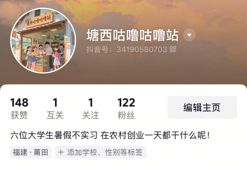 在塘西创业小铺稳步运营的同时,创业团队同步播下了另一颗希望的种子——运营抖音账号。紧扣平台流行趋势打造的宣传内容,如同一股灵动的风,让“塘西咕噜咕噜站”的名号乘着热门氛围在网络间流转,短短三天便收获百位粉丝的青睐,浏览量共达1w左右,这份亮眼的成绩,正是乡野魅力与青春创意碰撞出的火花。
