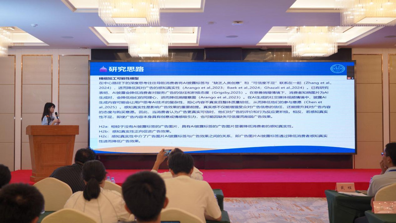 在论文宣讲环节,学者们围绕网络欺凌心理机制、绿色游戏化设计、AI广告披露标签效应、消费者购买意愿、直播电商助农、平台技术与文化认同等前沿议题汇报研究成果。