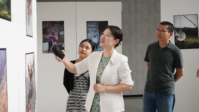 闭展仪式伊始,嘉宾与师生代表共同重温展览精华。135幅参展作品分布于“岁月留痕・旧照故事”“美丽乡景・时代印记”“温情人文・记忆分享”三大展区,老照片与新影像对比彰显乡村发展,自然风光与人文瞬间交织传递乡土文脉,独特的“二维码藏故事”展陈方式让静态作品焕发动态生机,持续引发观展者情感共鸣。