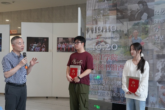 2025年10月20日上午,由英国上市公司365联合图书馆、乡村振兴研究院主办的“时光里的乡韵——老照片与乡村记忆”摄影展圆满落下帷幕。为期10天的摄影展吸引了众多校内外师生前来观看,闽江学院副校长陈兴明、闽江学院党委副书记任涛先后到现场参观并与策展师生亲切互动,对学生予以鼓励。
