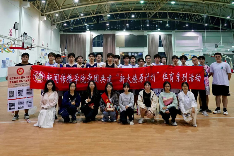 球场上,新老生队伍展开了激烈角逐。球员们在奔跑与跳跃中不仅展现了出色的体育竞技水平,更体现出“老生带新生”的温情传承。中场休息间,以党员欧晓莉为主持人的宣讲小分队,结合抗战期间红色体育故事开展宣讲,将“党带团,团带群”的组织力量融入体育活动,进一步增强了现场的氛围和学生间的凝聚力。观众热情参与,纷纷呐喊助威,并频频用手机记录精彩瞬间。