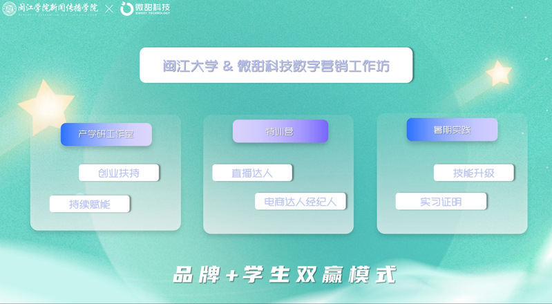 此次特训营的结束并非终点,而是更深层次合作的起点。仪式上,微甜科技宣布正式启动“产学研工作室”及“账号孵化”计划。该计划将持续面向优秀学员开放报名,为有志于在直播电商领域深耕的学生提供长期的实战辅导、项目资源和创业支持。